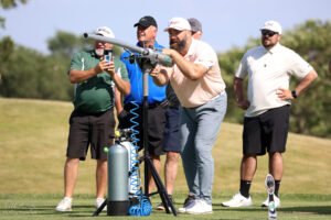 This is quieter than the AR-15 but can reach even longer yardage (200 to 800 yards). It can be handheld or mounted to a stationary tripod depending upon how much yardage is available and the hole layout. This one has a lot more power and flexibility than the other 2 options, We have 8 of these to split between all territories collectively so booking in advance is highly suggested.